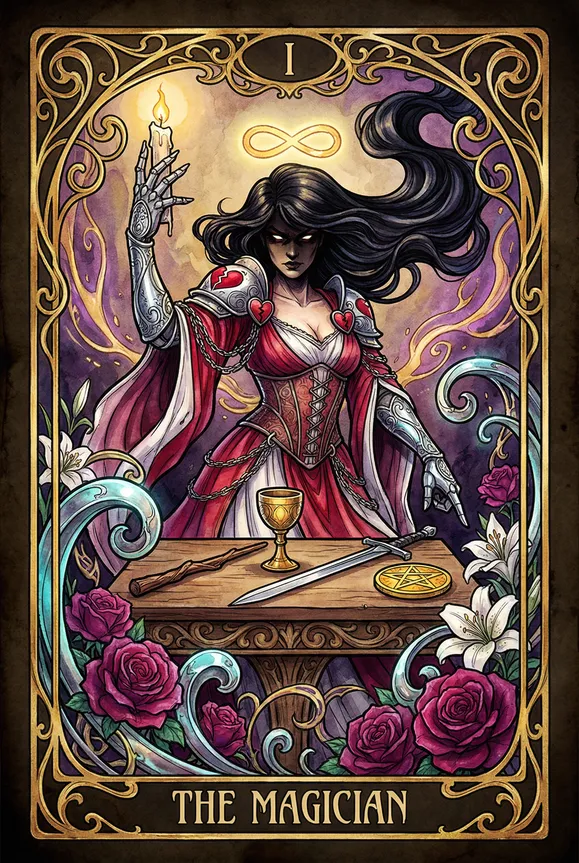 Build a persona from scratch. The system assigns cards based on your character concept, determines polarity, maps the journey position, layers secondary cards, defines the arc engine, and outputs a complete Persona Dossier.